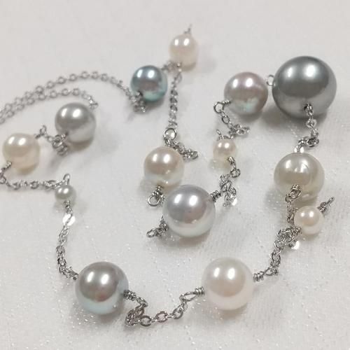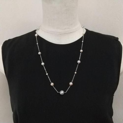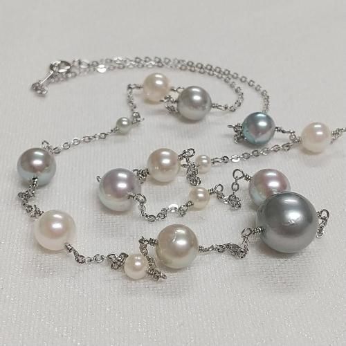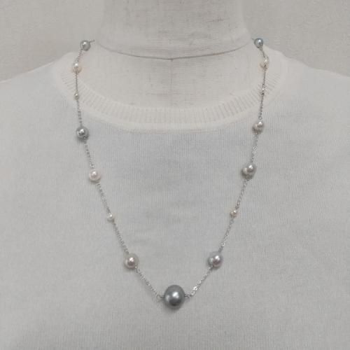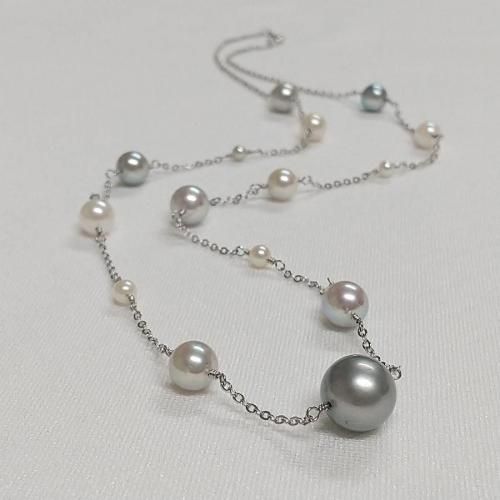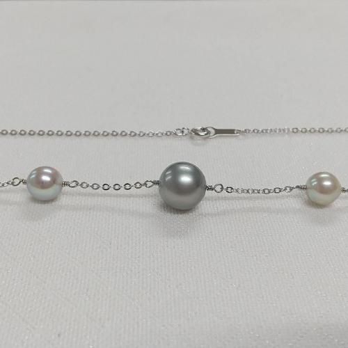 タヒチ黒蝶&あこや真珠SVステーションネックレス(56.5cm)